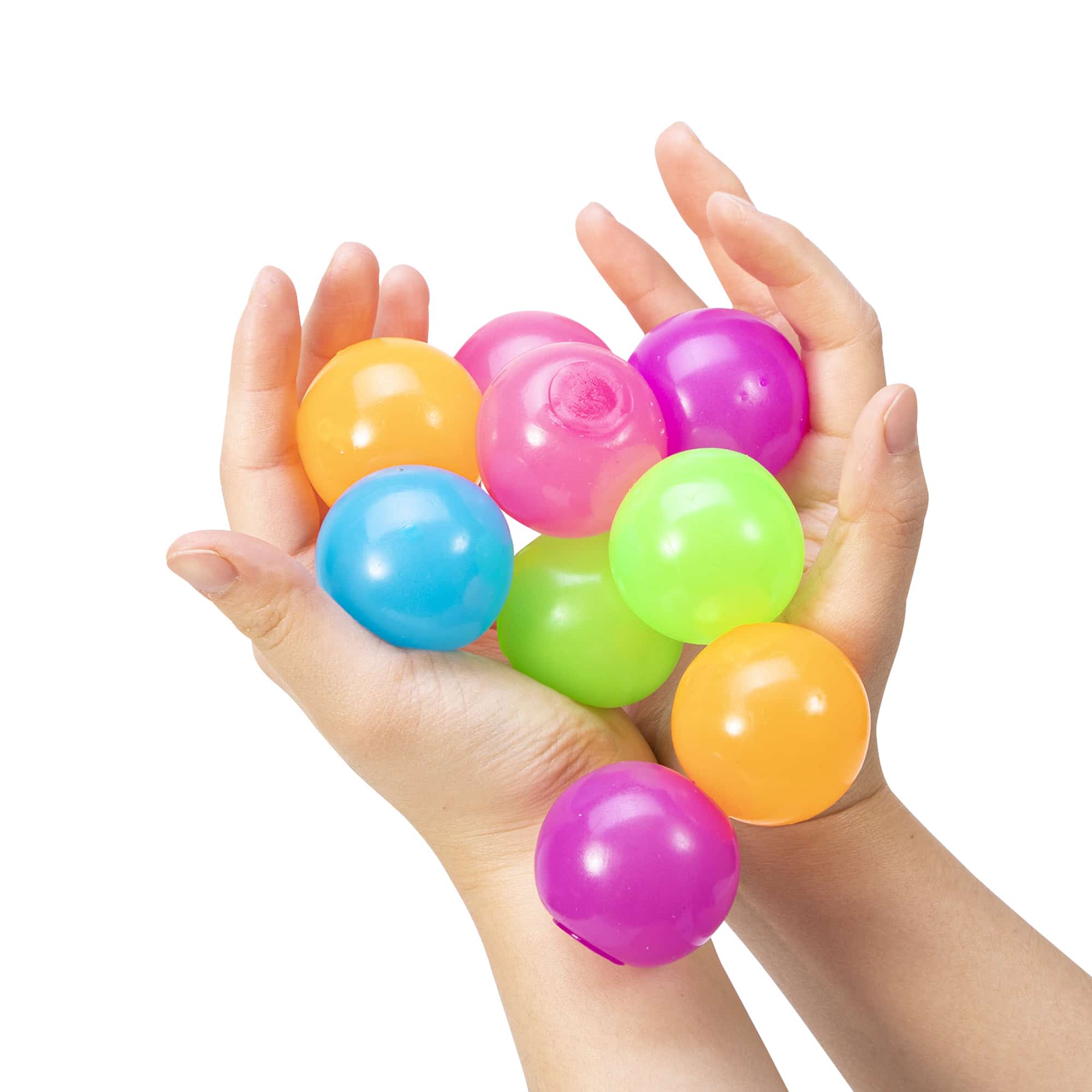 NeeDoh Stickums give you glowy, squishy fun in day or night! Stickums is a pack of 12 small groovy globs in an exciting assortment of glow-in-the-dark colors. A light air fill and sticky skin allows you to not just give them a good squeeze, squish, pull, or smush; you can throw it on a wall, window, or any flat surface to watch the groovy roll down and around.